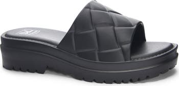 Slip into the cushy comfort of this padded slide sandal featuring a wide molded strap and modest heel with a grippy traction sole.