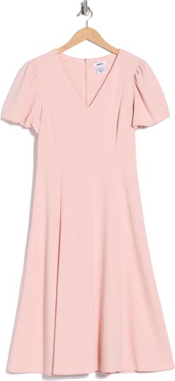 Chic and versatile, this fit‑and‑flare dress features short puff sleeves and a flattering V‑neck, falling below the knee for an easy choice for brunch, weekend plans or casual daytime events.