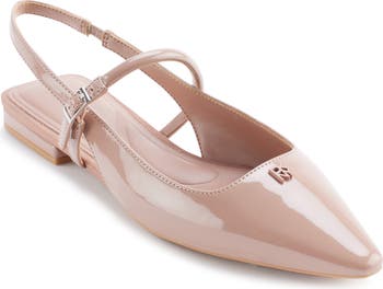 A slim mary jane strap adds extra sophistication to this memory foam–cushioned slingback flat.