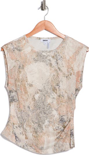 A rustic marble print covers this softly knit top you can wear for desk days or drinks dates.
