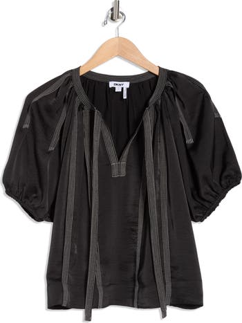 High-contrast stitching distinguishes a split-neck top that has you looking posh for brunch outings or weekends strolling through the farmer's market.