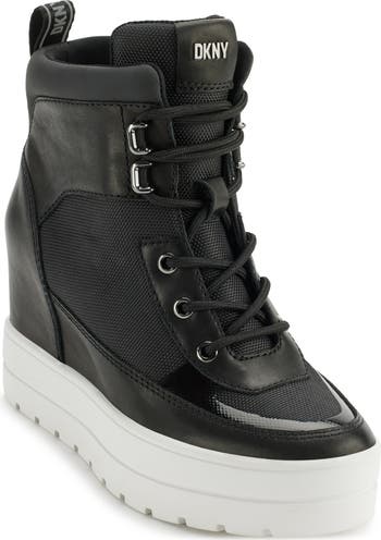 Show off sporty-chic style in this platform wedge bootie fashioned with memory foam cushioning, an easy side-zip closure and flexible white sole.