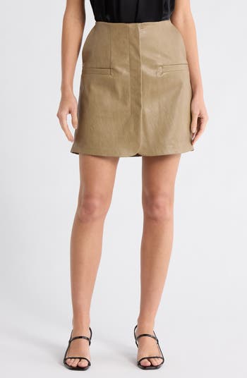 Perfect for a day or night out, this chic faux-leather miniskirt is fashioned with handy pockets.