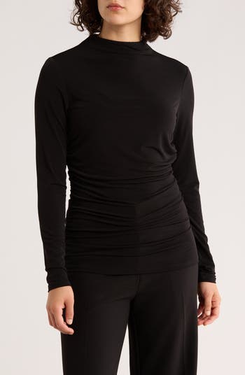 Elevate your everyday wardrobe with this long-sleeve jersey top framed by an elegant funnel neck and gathered side ruching.