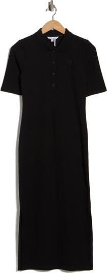 Logo embroidery dials up the prep effect on this knit polo dress made with short sleeves.