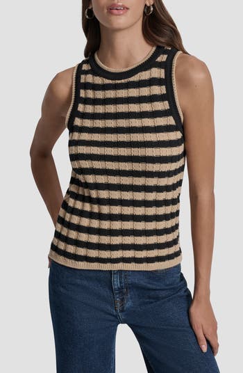 This sophisticated striped top is knit with soft ribbing and finished with a polished crewneck.