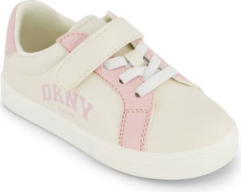 An arched logo brings DKNY's signature swagger to a low-profile sneaker built on a flexible sole with soft padding for all-day comfort.