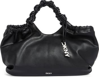 Glimmering logo hardware brands this softly unstructured faux-leather tote complete with artfully wrapped top handles.