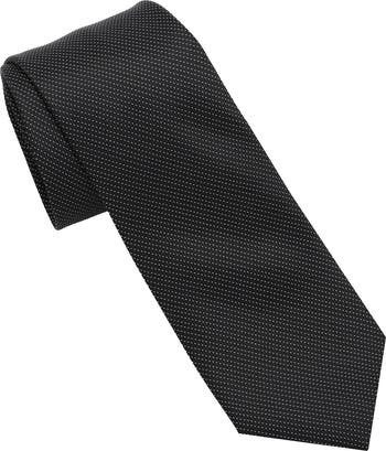 Dotted pin stipes add understated distinction to a tie that adds a smart, polished finish to any formal or semiformal look.