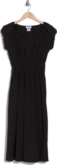 Puffy sleeves enhance the charm of this solid fit-and-flare dress that's perfect for a day or night out.