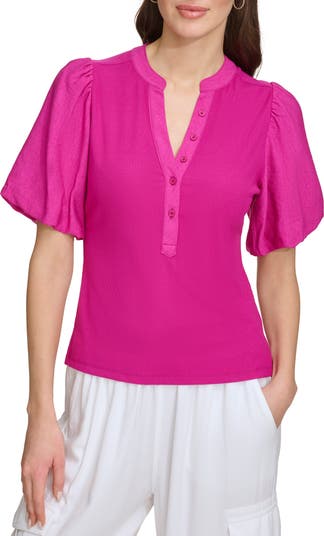 • Adrianna Papell Patterned Pinch Sleeve Button-Up Shirt