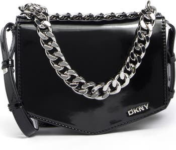 Keep your essentials organized and close by in this compact crossbody featuring triple compartments and an edgy chain strap.