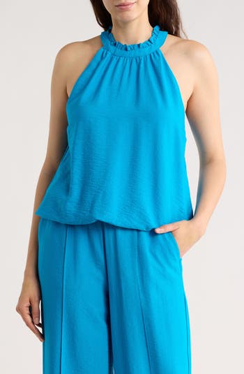 A ruffled neck and a bubble hem lend playful volume to this softly textured top.