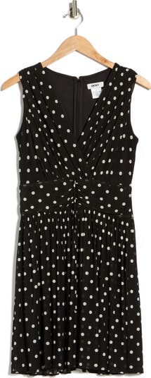Perfect for date nights or cocktail gatherings, this sleeveless dress is covered in polka dots and cut in a flattering fit-and-flare silhouette.
