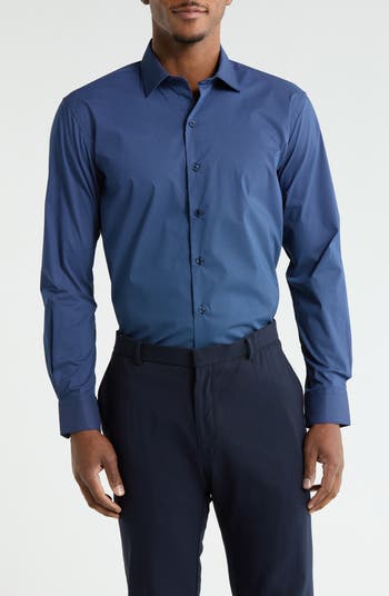 Tailored in a slim fit with a hint of stretch, this mini-dot print dress shirt keeps you looking sharp and feeling comfortable from morning meetings to dinner plans.