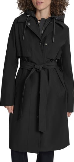 Layer up for stormy weather without compromising on refinement in this trench-inspired raincoat covered with a water-sluicing laminated coating and topped with a shower-shielding hood.