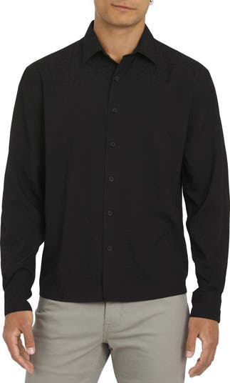 Crisp fabric with a hint of stretch brings all-day comfort to this button-up shirt, making it a smart and refined wardrobe staple.