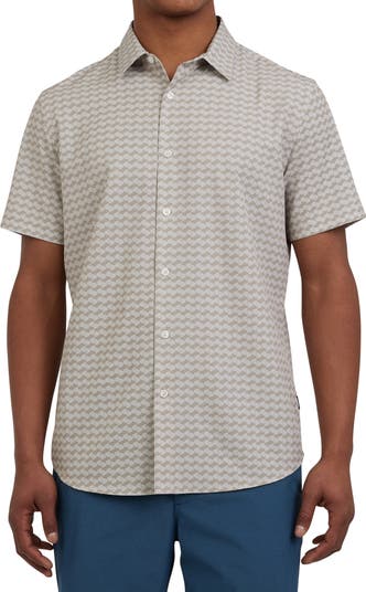A fresh take on a cool classic, this geometric patterned short-sleeve button-up shirt is a standout staple.