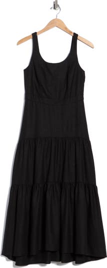 Delight your wardrobe with this sleeveless dress, framed through the bodice by a square neckline and vertical seams that cascade into a tiered skirt, creating a charming fit‑and‑flare silhouette.