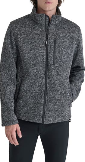 Stay warm in this sweater-knit fleece jacket constructed with a cozy stand collar and sporty zip pockets.