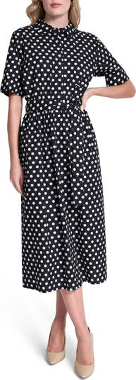 A matching tie snatches the waistline of an all-cotton shirtdress that has you looking posh from workdays to weekend brunch outings and beyond.