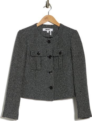 Classic workday tweed brings polish to this desk-to-dinner jacket updated in a cool cropped fit.