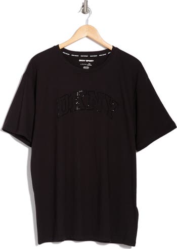 Elevate your off-duty style with this casual tee featuring a rhinestone logo graphic at the chest. Made from soft, breathable cotton-stretch fabric, it's the perfect go-to for workouts, errands or laid-back weekends.