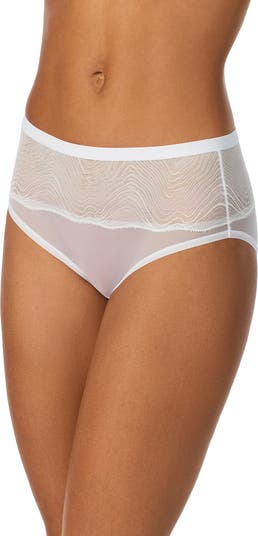 Sheer mesh and lace combine to sultry effect on these hipster panties fashioned with a stretchy waistband.