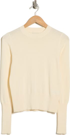 A touch of cashmere elevates the soft feel of a cotton sweater that's fashioned with simple details for minimalist appeal.