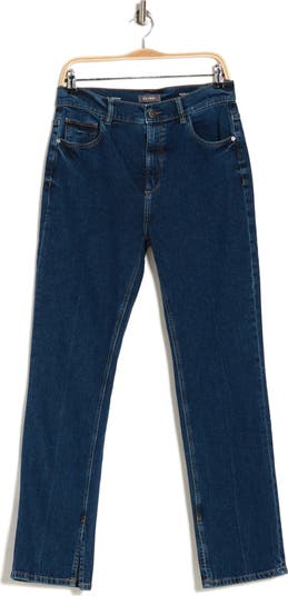 Refresh your essentials with high-waisted straight-leg jeans constructed from comfortable stretch-cotton denim with slit hems.