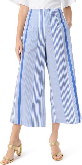 Crisp stripes add unmistakable preppy vibes to these cropped, wide-leg pants topped with a high waist.