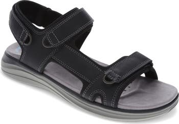 A moisture-wicking, perforated footbed cushions this comfort-minded sandal constructed with adjustable straps and a flexible traction sole.
