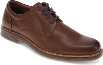 Moisture-wicking lining ensures breathability in a plain-toe derby with tonal stitching to complete a polished look.