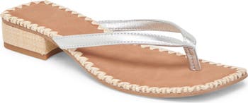 A woven block heel and whipstitch trim enhance the earthy style of this weekend-essential flip-flop.