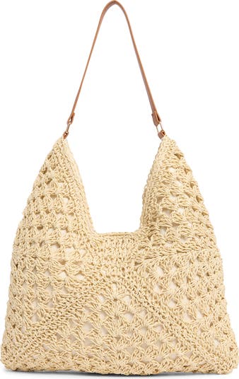 Pack away your beach-day essentials with this woven straw shoulder bag fitted with a roomy interior.