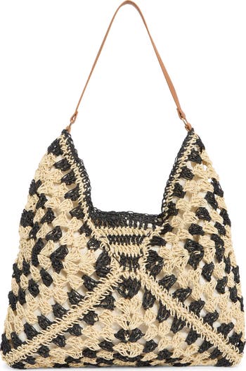 Pack away your beach-day essentials with this woven straw shoulder bag fitted with a roomy interior.
