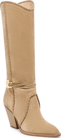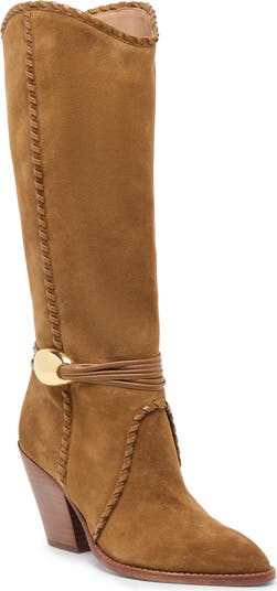 Whipstitch trim and polished hardware bring a touch of modern attitude to this outfit-elevating block-heel boot.