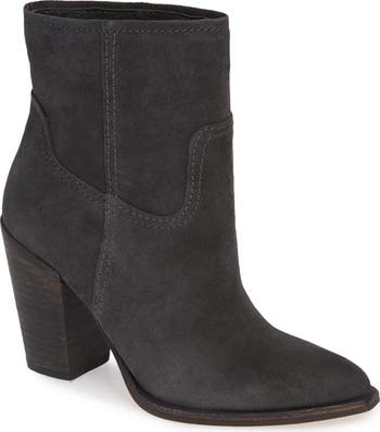 Destined to be a lifetime favorite the first time you put it on, this stacked-heel bootie features pieced leather with a slightly slouchy profile.