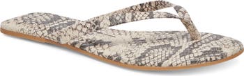 A snakeskin-embossed finish brings a chic touch to this soft leather flip flop featuring a lightly cushioned footbed and flat, walkable sole.