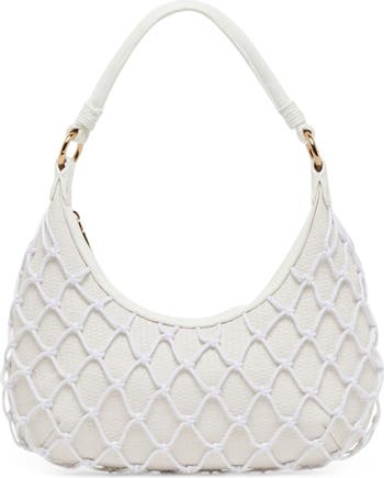 Channel retro-chic style with this structured handbag featuring a knotted rope overlay and multiple straps for carrying convenience.