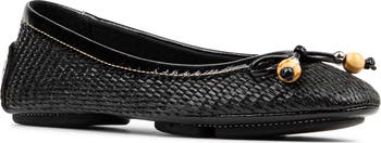 Striped wooden beads lend an artisanal accent to the delicate bow crowning this charming ballet flat designed with a foam-cushioned footbed and a grippy sole for dependable traction.