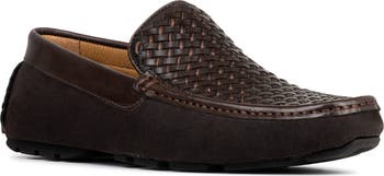 A woven-leather upper detailed with tonal topstiching and suede accents brings a distinctive look to this slip-on loafer made with a well-cushioned footbed.