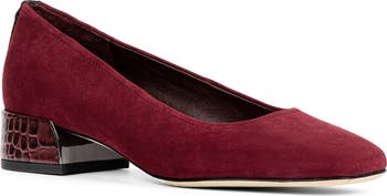 A square toe and low block heel balance a sophisticated pump set on a cushioned footbed for long-lasting comfort.