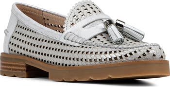 Experience plush comfort with every step you take in this memory-foam padded loafer featuring a breezy woven-leather design and swingy tassels.