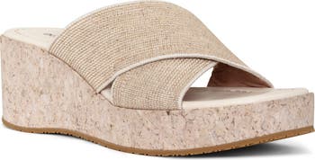 Crisscrossing straps and a cork-textured wedge heel make this sandal a casual favorite, while memory foam cushioning provides everyday comfort.