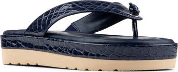 An abundance of cushioning keeps you light on your feet in a foam-cushioned sandal framed by wide, glossy straps with a croc-embossed texture finish.