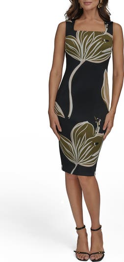 Oversized blooms bring artsy energy to this curve-hugging dress made with plenty of stretch to keep you moving with ease.