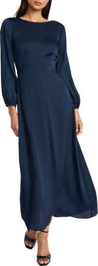 Blousy sleeves and a skin-baring tie-back closure lend romantic charm to this maxi dress that's sure to impress on date night.