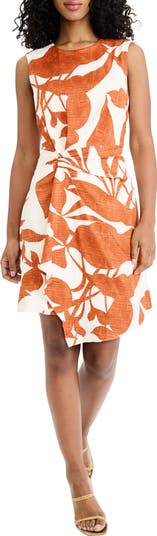 Show off this sculptural fit-and-flare dress fashioned with a gracefully gathered waist and draped asymmetric hem.