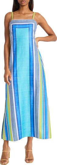 Variegated stripes lend eye-catching color to an ankle-grazing maxi dress cut from airy fabric for comfort and ease even as the temp rises.